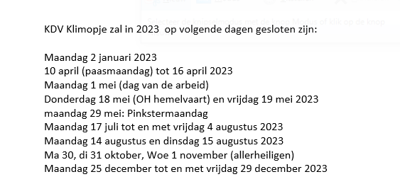 Via deze link heeft u een overzicht van onze sluitingsdagen in 2023